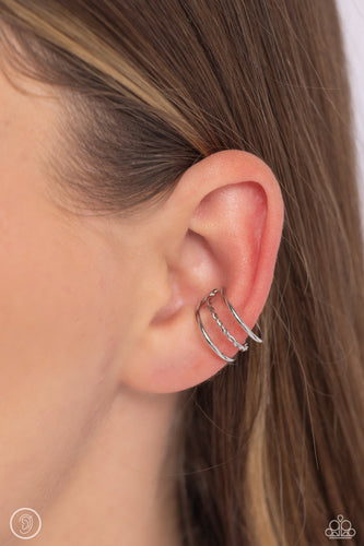 Paparazzi Textured Triumph - Silver Ear Cuffs